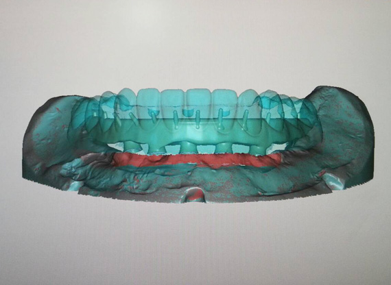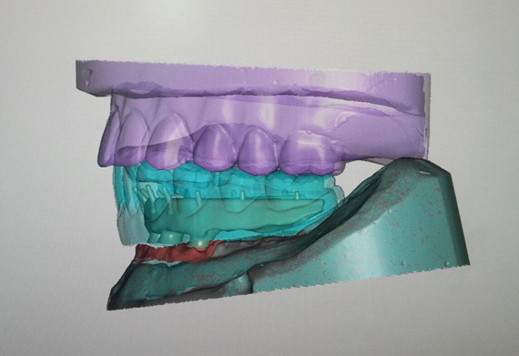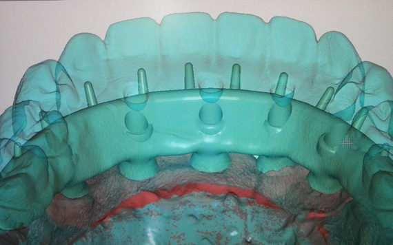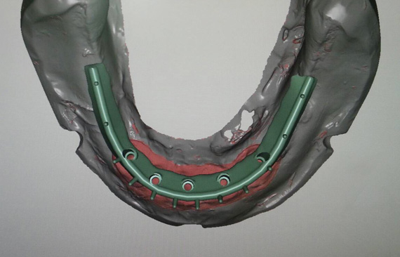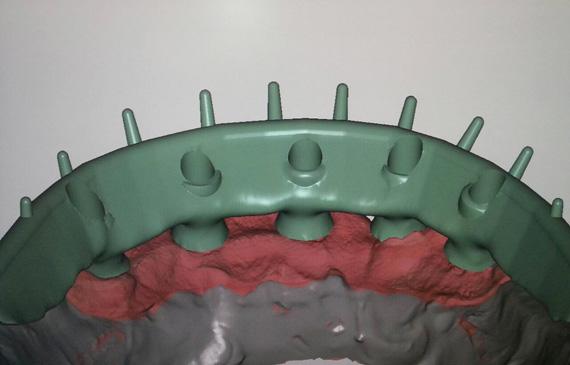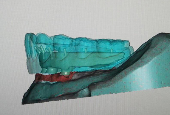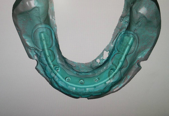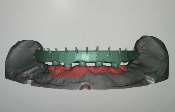 STEP1 TEETH-SETUP AND TRY-IN Scan try-in denture as situation model. Titanium implant bar design as a structure for fixed-removable hybrid acrylic. |