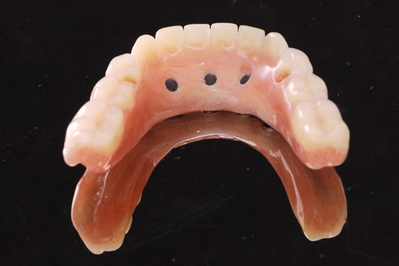 STEP3 FINAL PROSTHESIS Fixed-removable acrylic denture on implant multi-unit abutments. |