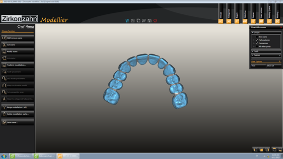 STEP2 CAD-CAM Define margin of each tooth. Eggshell CAD software immitated the external surface of wax-up. |
