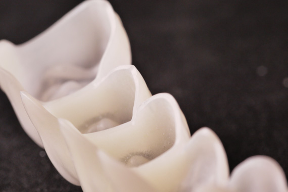 STEP3 FINAL PROSTHESIS Milled PMMA (Acrylic) with even 0.4 mm thickness across the whole surface. Immitation of the external surface of wax-up. |