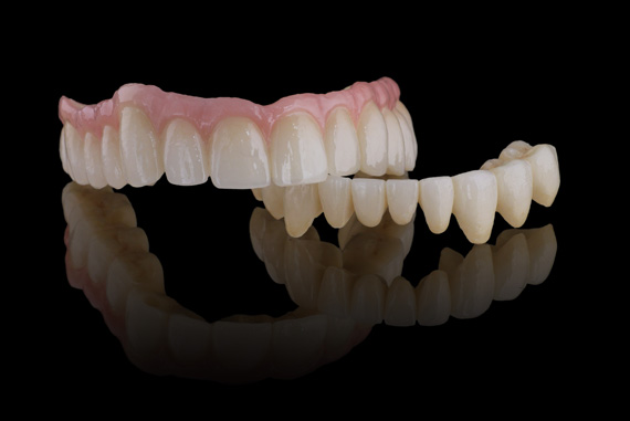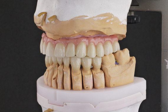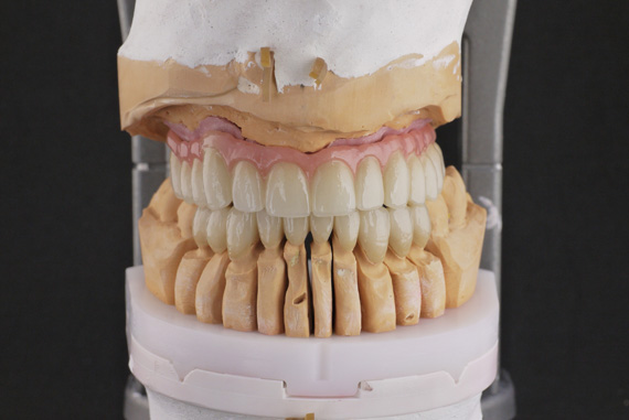 Upper arch - implant bridge all on 4 Lower arch - Long-span bridge 10 unit |