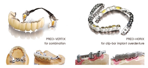 (profile attachment) and “Preci-Vertix” (extracoronal attachment). The PRECI-HORIX bar and